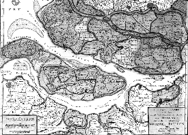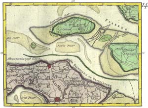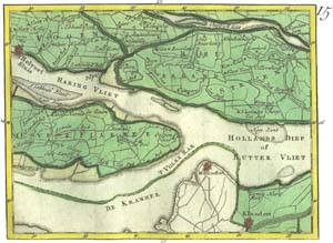 | Uitsnede uit een kaart van het zuidelijk deel van Holland, uitgegeven in 1748. Overgenomen uit het boek: Dirksland Sas, uitgave 2001. |