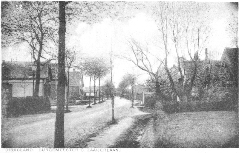 | Foto 46 Een foto van de B.C. Zaaijerlaan in de jaren 20 van de 20ste eeuw, toen nog niet geheel bebouwd. De weg was nog niet bestraat en aan weerszijde lopen sloten. Links bij de lantaarn is de Emmalaan, rechts op de voorgrond het zg. "Boschje" of de "Muggendreef", daar loopt thans de straat Bosdreef. |