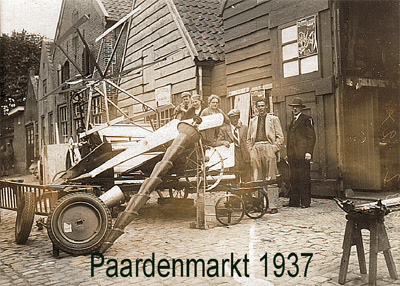 mevr. Nieuwland deed de winkel en verkocht meubelen in de winkel op de Voorstraat. In de schuur ernaast, daar uit deed mijn vader de handel in landbouwmachines. Eerst had hij een Indian motorfiets met zijspan, maar later huurde hij van zijn neef Piet van Dongen een Two Seater Chevrolet om beurzen en klanten te bezoeken, als wij mee mochten rijden, gingen we in de kattebak wat tof was. Hij was agent voor Boeke & Huidekoper uit Haarlem, waar hij o.a Mc.Cormick machines van verkocht, maar ook andere landbouwmachines als eggen, ploegen, kunstmeststrooiers enz. Zo heeft hij de eerste Alfa Laval melkmachine verkocht rond 1938 aan Sacharias Poortvliet, met een Mc Cormick benzinemotor om de vacuümpomp aan te drijven. Hij verkocht vooral zelfbinders om het graan te maaien en gelijktijdig te binden, zowel voor paarden tractie als om aangedreven te worden door tractoren, veelal Fordsons waren in opkomst, "Flakkee ging mechaniseren"! De binders kwamen in kisten van Amerikaans grenenhout aan uit Amerika. Veel kippen en varkenshokken zijn toen van dat hout getimmerd. De machines werden dan in de schuur in elkaar gezet, soms 's avonds laat, waar Jan Knöps, de broer van Willem Knöps de smid dan bij kwam dan helpen, dat mocht om een of andere reden niet en daarom werden de ramen van de schuur geblindeerd, zodat Kramer de politieagent het niet kon zien. Alles werd toen aangevoerd met de beurtschippers uit Rotterdam. Zelfs een dorsmachine voor Piet Both werd zo aangevoerd. Het zal wel een heel karwei geweest zijn om deze in Rotterdam aan boord te krijgen en in de haven van Dirksland weer te lossen. Ze deden het toen gewoon zoo !!! (met twee oo's ) In 1938,moest mijn vader ons huis Achterdorp 118 en de schuur op den Achterweg verkopen, omdat hij de hypotheek door de "crisis jaren" niet af kon lossen. Hij was f.50,- per jaar achter en doordat de hypotheeknemer overleed en de kinderen het portie op eisten moest er verplicht verkocht worden. Bram Nieuwland kocht de schuur en ging hier verder met zijn zoons in meubel stoffering en binnen timmerwerk, vader huurde van Bram Nieuwland de kleinere schuur en zo heeft hij zijn handel tot 1940 gedaan tot hij is overleden. Op den Achterweg was onderling goed contact bij de ouderen en wij als jongens hebben hier heel wat afgespeeld. In de giervaten speelden we onderzeebootje en deden we verstoppertje en andere spelletjes op de stapels hout. |