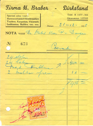 Dit was een aankoop die wij deden in 1955 bij Braber. De betaling werd bezegeld door de plakzegel,