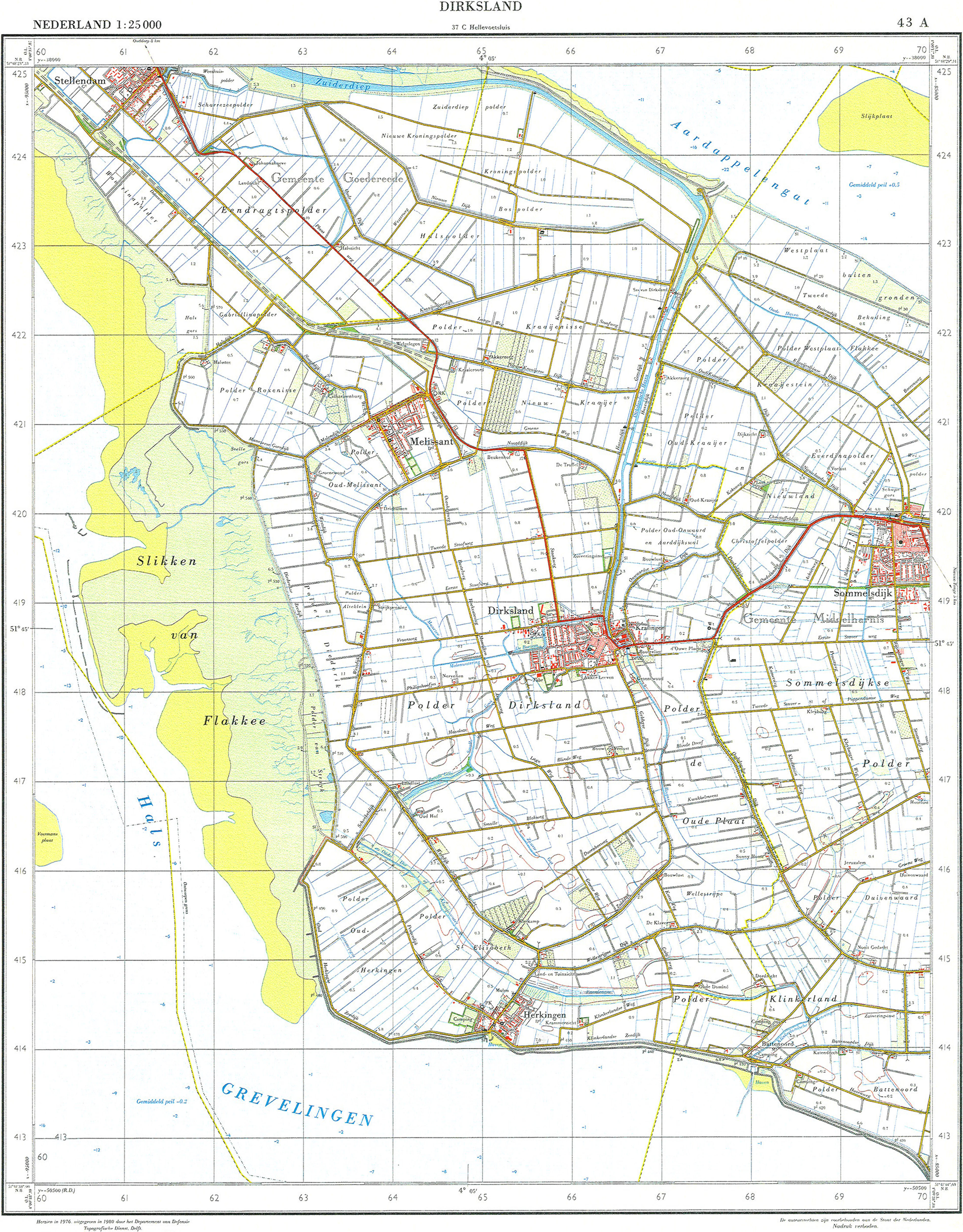 Topografische Kaart van Nederland, schaal 1:25.000, blad 43A, Dirksland.