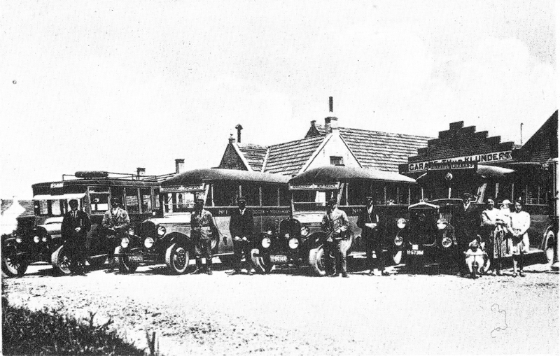 | Bladzijde 69, Melissant. Melissant had de eer de Eerste Autobus Onderneming (E.F.A.O.) op Flakkee te herbergen. Afgebeeld zijn de autobussen van Van de Klundert voor de garage aan de Nieuwe Weg. Later heeft zich hier transportbedrijf J.L. Mijnders gevestigd, tegenwoordig ook alweer verhuist. |
